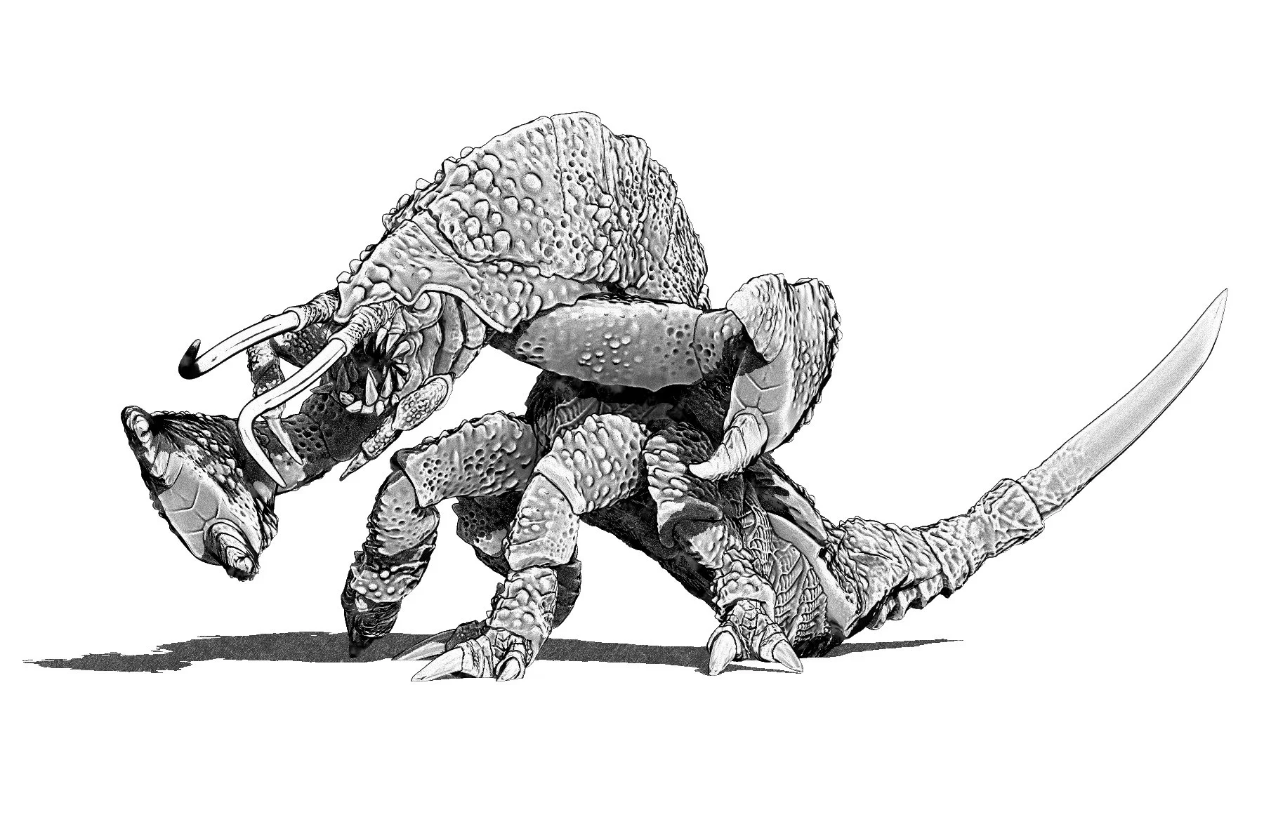 The bullywugs, a secretive and reclusive race, possess a symbiotic relationship with the swamp and its inhabitants. Their bodies blend amphibian and humanoid features, with slender limbs, webbed hands and feet, and iridescent skin that shimmers with hues of green and gold. They possess large, expressive eyes that peer out from beneath hoods of translucent skin, allowing them to see even in the darkest corners of the marsh.